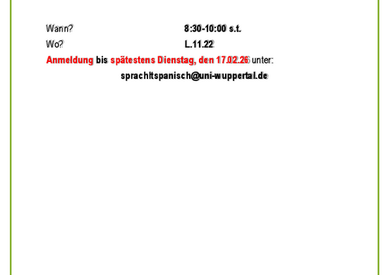 Der Sprachleistungstest Spanisch findet am 20.02.2026, 8:30-10:00 Uhr statt.